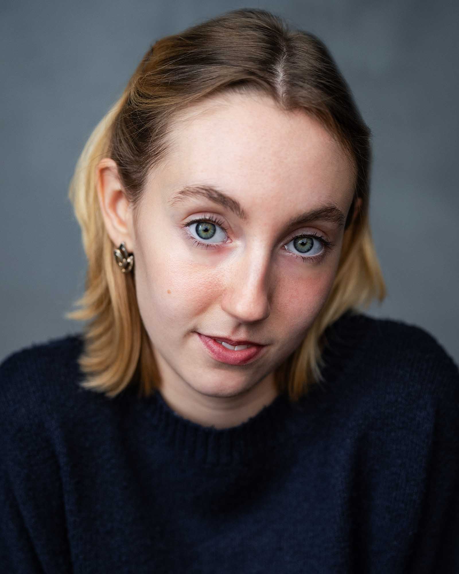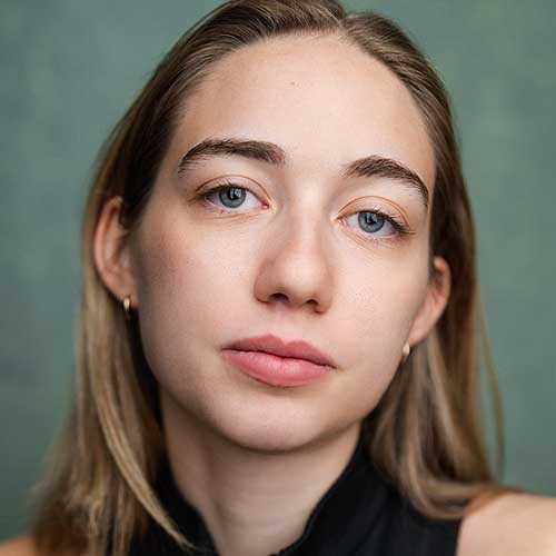 Hazel Armenante (she/her) is a Los Angeles native, born and raised in the sun despite her gingerness. She grew up immersed in the LA theatre and musical theatre scene, and has been singing since she could talk. She grew up a stones throw from Paramount studios, and would frequently imagine herself working with all her favorite actors. In pursuit of this, she travelled over 5,000 miles from home to complete her education at Mason Gross. She is excited to see where acting takes her next, whether that be right across the Lincoln tunnel, or home to LA. Hazel is interested in refugee aid, and she has fundraised thousands for UNHCR. She has an untapped mathematician’s brain, a love for songwriting, period pieces, and knitting. I promise she gets out sometimes.